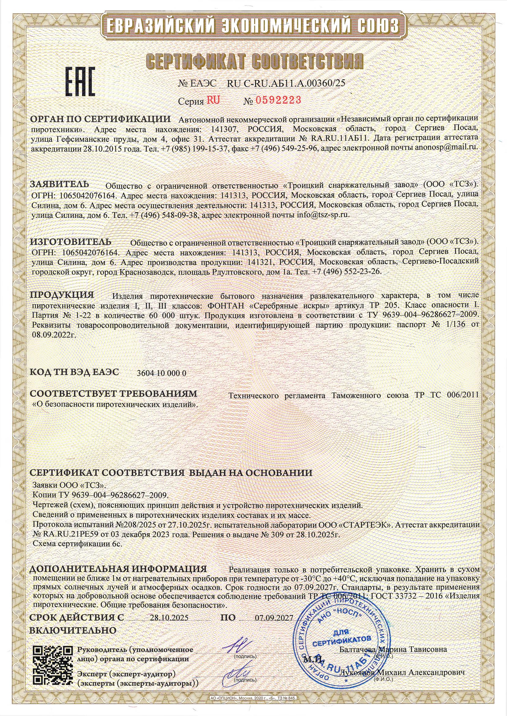 Купить качественные бенгальские огни можно в нашем интернет-магазине. Мы реализуем продукцию известных производителей, которая сертифицирована в РФ. Это гарантирует ее высокое качество и положительные эмоции от любого праздника.