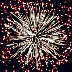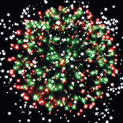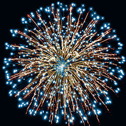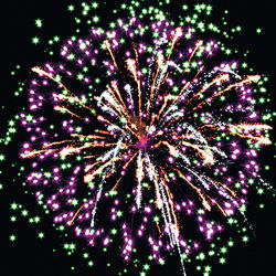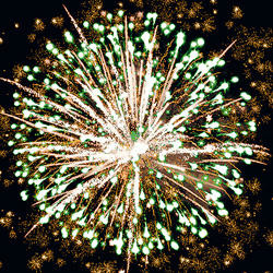 Разноцветные кометы разрываются сферами из серебряных форсов, цветных, мерцающих огней и множества трещащих сфер.