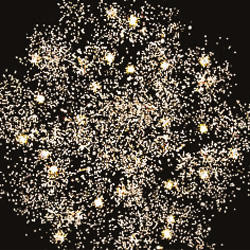 Цветные звезды с пышными хвостами. Множество серебряных ниспадающих нитей и облако треска.