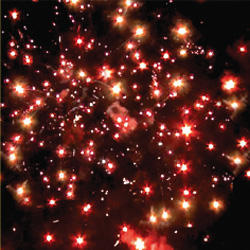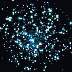 Золотая мерцающая сфера. Облако треска. Разноцветные звезды с пышными хвостами.