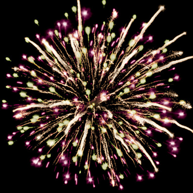 Разноцветные кометы разрываются сферами из золотых форсов, и цветных мерцающих огней.