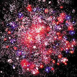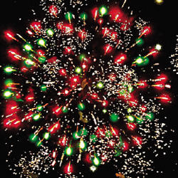 Цветные звезды с пышными хвостами. Множество серебряных ниспадающих нитей и мерцание. Облако треска и сфера золотых хвостов.