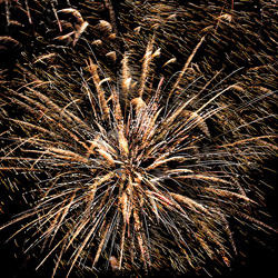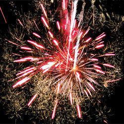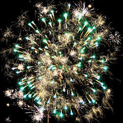 Разноцветные кометы, искристые трассы разрываются сферами из серебряных мерцающих и цветных огней с форсами, золотых трещащих разлетающихся искр и множеством трещащих сфер.
