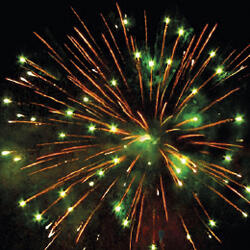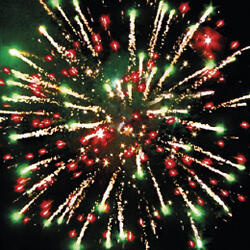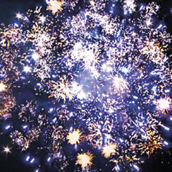 Разноцветные мерцающие сферы. Цветные звезды с пышными хвостами и облако треска. Множество золотых ниспадающих нитей.