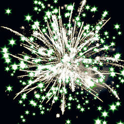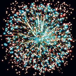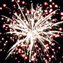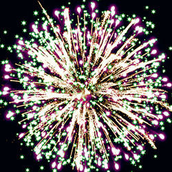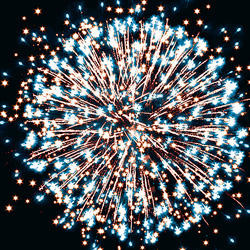 Разноцветные кометы разрываются сферами из золотых и серебряных трещащих форсов, цветных мерцающих огней.