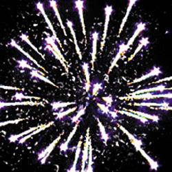 Фонтан: - крупные белые трещащие вспышки и красно-зеленые огни. Красные звезды с пышными хвостами (кокос) и трещащая хризантема. Синие звезды с пышными хвостами (кокос) и трещащая хризантема. Зеленые звезды с пышными хвостами (кокос) и трещащая хризантема.