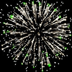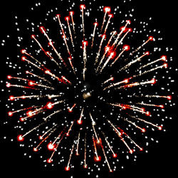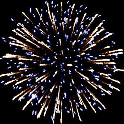Разноцветные кометы разрываются сферами из цветных, мерцающихи трещащих огней, золотых и серебряных форсов.