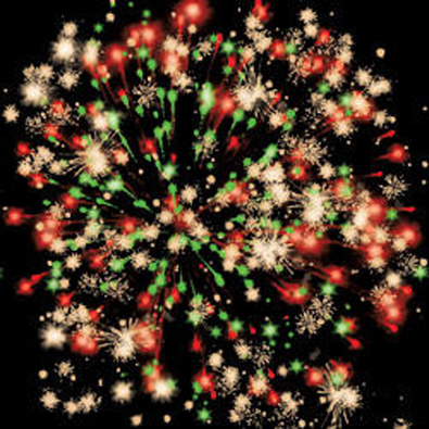 Разноцветные кометы разрываются сферами из цветных мерцающих огней, серебряных форсов и золотых трещащих огней.