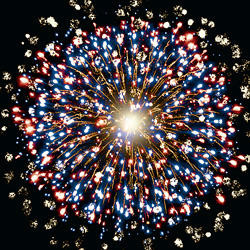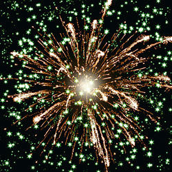 Разноцветные кометы разрываются сферами из золотых и серебряных искристых форсов, цветных огней и множества трещащих сфер.