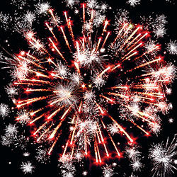Разноцветные кометы разрываются сферами из цветных, золотых мерцающих огней, серебряных искристых форсов и множества трещащих сфер.