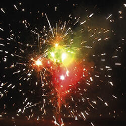 Поток золотых искр. Цветные огни и золотые трещащие вспышки.