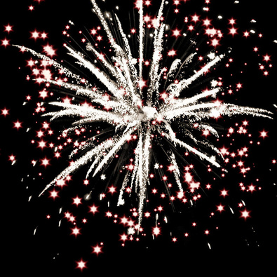 Разноцветные кометы разрываются сферами из цветных мерцающих и трещащих огней, серебряных форсов с трещащими искрами.