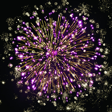 Разноцветные кометы разрываются сферами из золотых форсов, мерцающих огней и множества трещащих сфер.