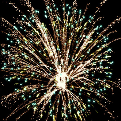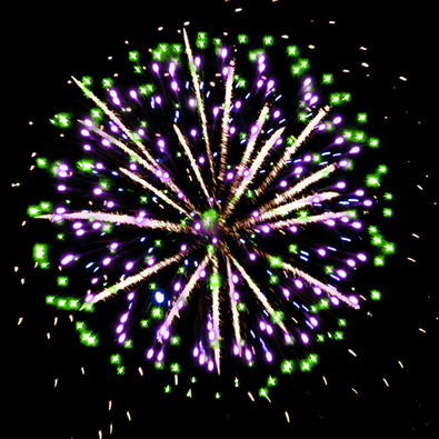 Разноцветные кометы разрываются сферами из: Золотых форсов, зеленых, синих и фиолетовых огней. Золотых с трещащими искрами форсов, голубых и золотых мерцающих огней. Золотых форсов, голубых, оранжевых и красных мерцающих огней. Золотых форсов, фиолетовых, оранжевых и серебряных мерцающих огней.