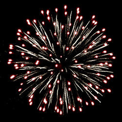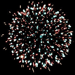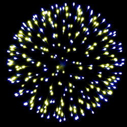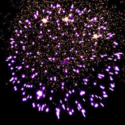 Разноцветные кометы разрываются сферами из цветных трещащих и мерцающих огней и серебряных форсов.