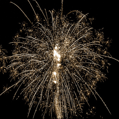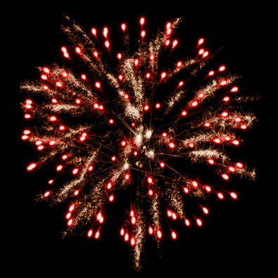 Разноцветные кометы разрываются сферами из: Красных огней и золотых форсов с красными искрами. Зеленых и золотых мерцающих огней. Серебряных форсов и трещащих разлетающихся искр. Красных огней и золотых искристых форсов.