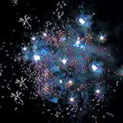 Разноцветные кометы разрываются сферами из: красных огней и множества трещащих сфер; зеленых огней и множества трещащих сфер; синих огней и множества трещащих сфер; фиолетовых огней и множества трещащих сфер; серебряных форсов и трещащих золотых огней.