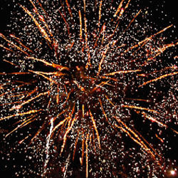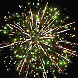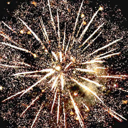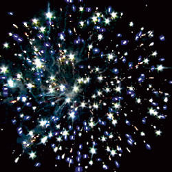 Множество серебряных ниспадающих нитей и облако треска. Комета с серебряным хвостом разрывается цветной мерцающей сферой.