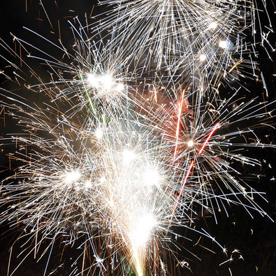 Поток золотых и серебряных порхающих огоньков, трещащих разлетающихся искр и цветных огней.