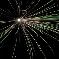 Разноцветные кометы разрываются сферами из цветных мерцающих и трещащих огней с золотыми и серебряными форсами.
