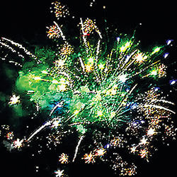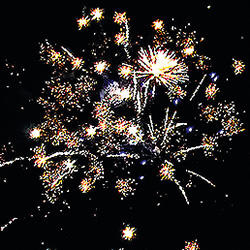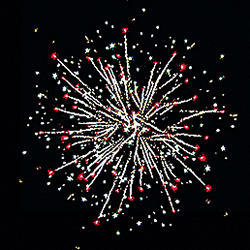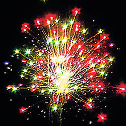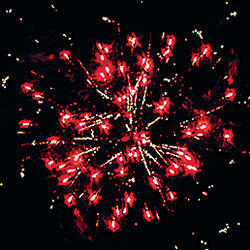 Разноцветные кометы, свистящие элементы, спиралеобразные искристые трассы, серебряные искристые трассы со свистом разрываются сферами из: множества трещащих сфер, красных, зеленых, синих и фиолетовых огней; золотых форсов с красными огнями на концах и белых мерцающих огней; золотых форсов, зеленых и красных мерцающих огней; золотых форсов, синих и золотых мерцающих огней; золотых форсов, множества трещащих золотых сфер и красных огней; золотых форсов, множества трещащих золотых сфер и зеленых огней; золотых форсов, множества трещащих золотых сфер и синих огней; золотых форсов с красными мерцающими искрами и трещащих огней; серебряные искристые трассы с зелеными огнями на концах (веер V); красных мерцающих и серебряных разбегающихся огоньков; золотых форсов с золотыми искрами и зелеными огнями на концах; золотых искристых форсов и трещащих огней.
