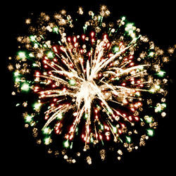 Разноцветные кометы. Золотые искристые трассы. Свистящие элементы. Сферы из форсов и мерцающих огней. Искры. Множества трещащих сфер.