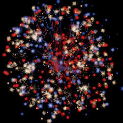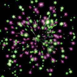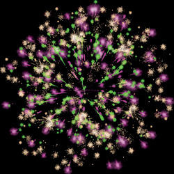Разноцветные кометы разрываются сферами из цветных мерцающих и трещащих огней.