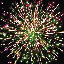 Разноцветные звезды с пышными хвостами, мерцание. Цветная сфера и облако треска. Звезды с пышными хвостами. Множество серебряных ниспадающих нитей.