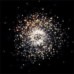 Разноцветные кометы разрываются сферами из серебряных форсов с цветными, мерцающими огнями на концах и множества трещащих сфер.