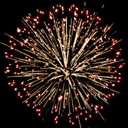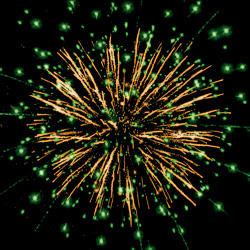 Золотые искристые трассы разрываются сферами из золотых форсов и цветных мерцающих огней.
