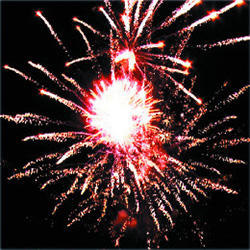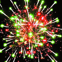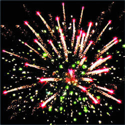 Красные звезды с пышными хвостами (кокос), синие звезды и зеленая мерцающая сфера (пион). Зеленые звезды с пышными хвостами (кокос), красная сфера (пион) и золотое мерцание. Красные звезды с пышными хвостами (кокос), зеленые звезды и белое мерцание. Серебряные звезды с пышными хвостами (кокос) и треск. Золотые звезды с пышными хвостами (кокос) и сине-зеленая сфера (пион). Желтые звезды с пышными хвостами (кокос) и облако трещащих разрывов (трещащий дождь). Красные звезды и облако треска (трещащая хризантема). Серебряные звезды с пышными хвостами (кокос) и красное мерцание. Серебряные звезды с пышными хвостами (кокос), зеленая сфера (пион) и треск. Красочная концовка: Красные звезды с пышными хвостами (кокос), синяя сфера (пион) и треск.