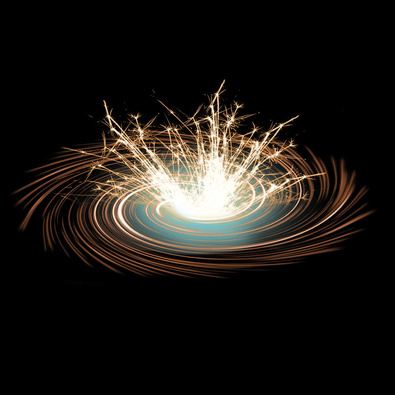 Раскручивается, разбрасывая золотые искры и светясь цветным огнём.