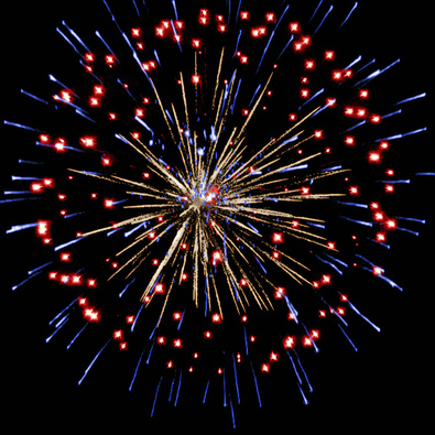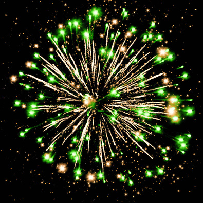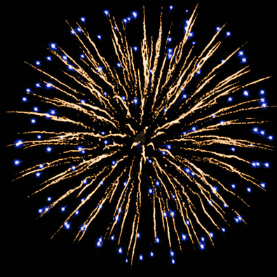 Разноцветные кометы разрываются сферами из золотых искристых форсов, цветных мерцающих и огней и множества серебряных трещащих искр.