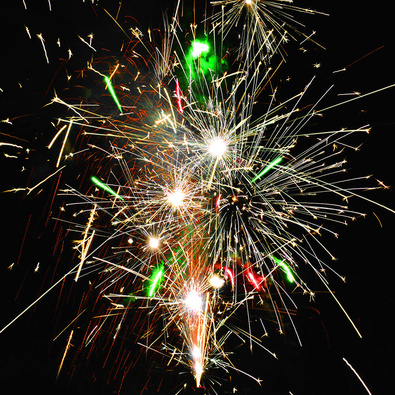 Поток серебряных огоньков и золотых искр, цветных трещащих огней, серебряных трещащих сфер.
