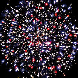 Разноцветная мерцающая сфера. Множество золотых и серебряных ниспадающих нитей. Цветные звезды с пышными хвостами и треск.