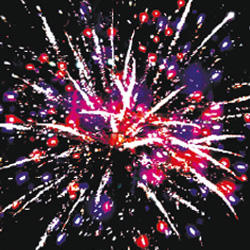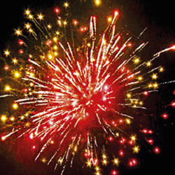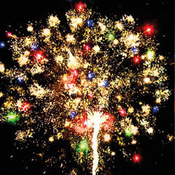 Сфера серебряных хвостов с переходом в цветные звезды и мерцание .Разноцветные ппышные хвосты и облако треска.
