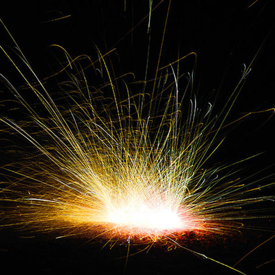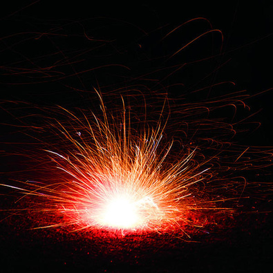 Крутится. Образует круг красного, зеленого, желтого огня.