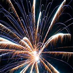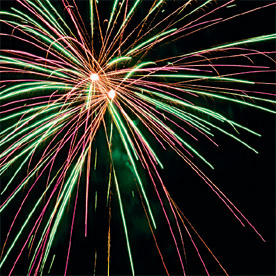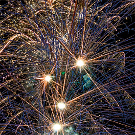 Разноцветные кометы разрываются сферами из: красных и белых мерцающих огней; зеленых и трещащих огней; фиолетовых и зеленых тмерцающих огней; красных огней с форсами и трещащих огней; зеленых огней с форсами и трещащих огней; фиолетовых огней с форсами и трещащих огней; синих огней с золотыми искристыми форсами; красных огней с золотыми искристыми форсами; зеленых огней с золотыми искристыми форсами. золотые с трещащими искрами трассы разрываются сферами из синих огней и множестват трещащих сфер.